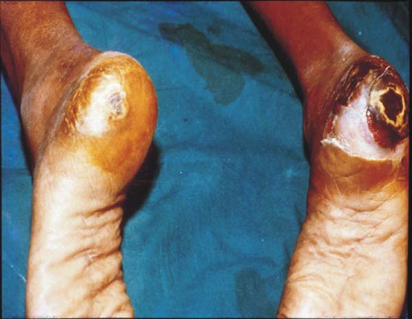 Blisters and sores appear on numb areas of the feet and legs such as forefoot, heel region and as a result of numbness, pressure or injury that goes unnoticed and eventually become portal of entry for bacteria and infection.
